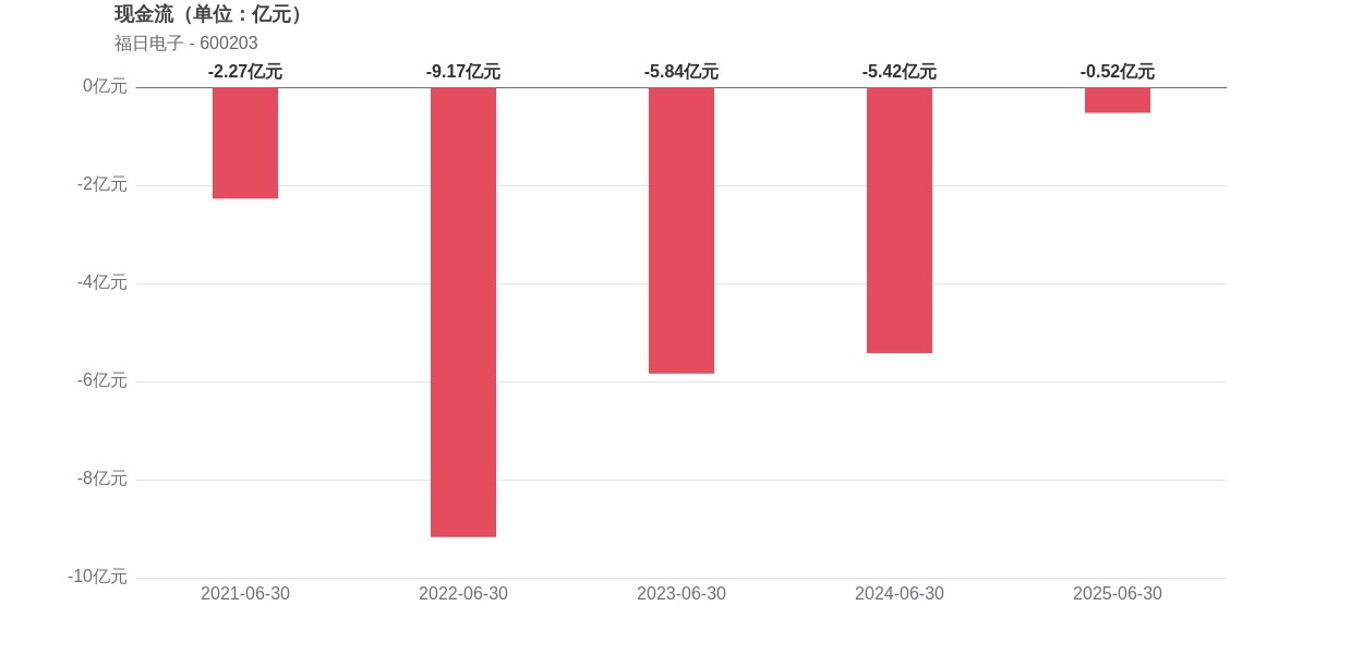 在经营稳健性方面,福日电子面临存货管理压力,存货周转天数为60.21天,较2024年上半年增长了20.24%,反映出库存管理效率有所下降。经营活动产生的现金流净额为-0.52亿元,虽然较2024年同期的-5.42亿元有所改善,但仍为负值,显示出经营现金流仍需改善。此外,2025年上半年的资产负债率为79.64%,同比增长了6.96个百分点,这意味着公司债务负担进一步加重。